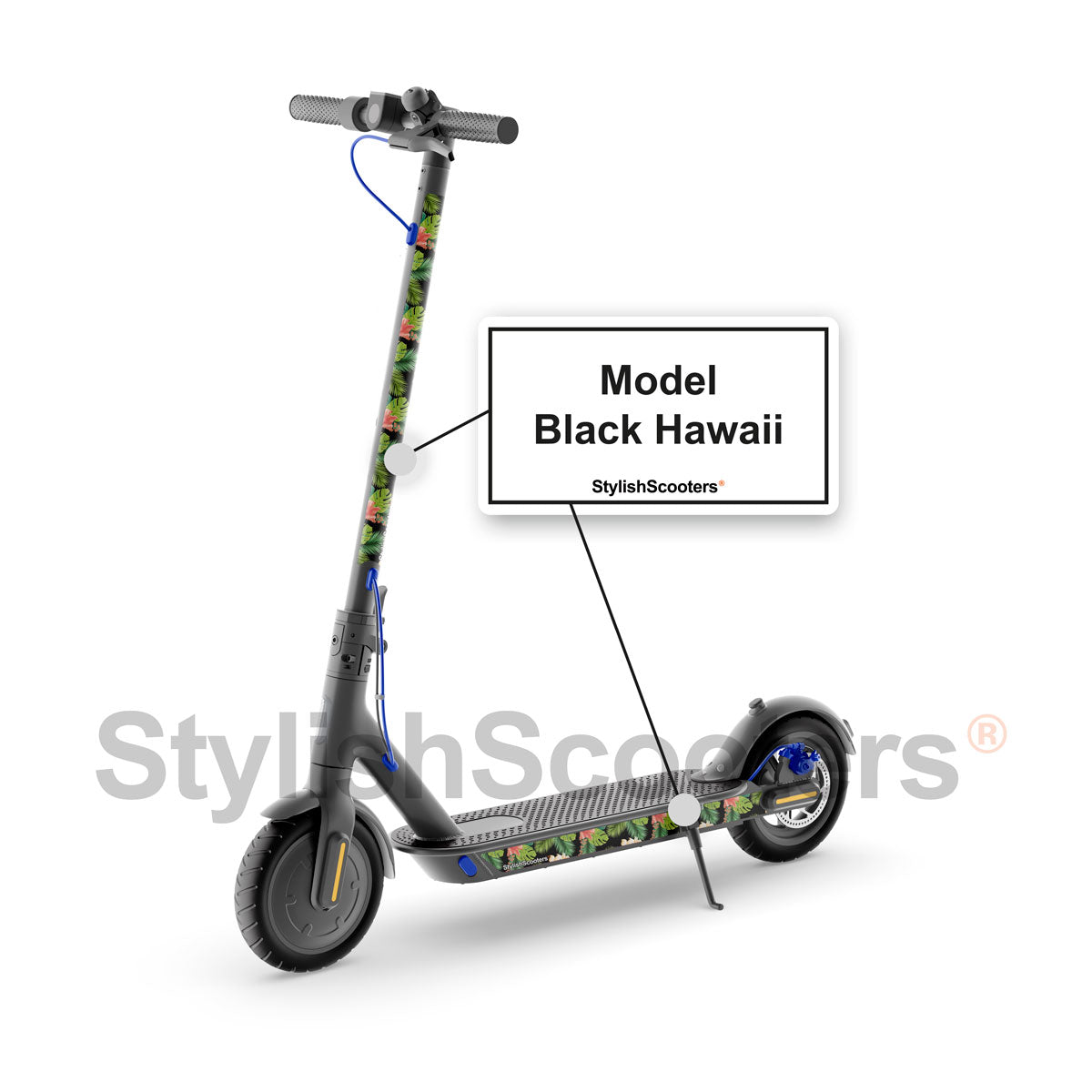 Pegatinas para patinete Xiaomi M365 StylishScooters® diseño Black Hawaii 4 piezas.